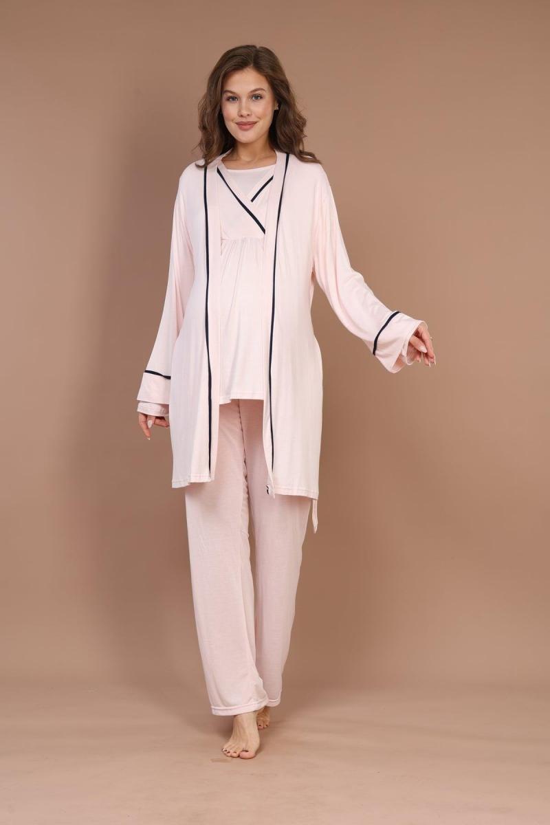 RİMEL 546 Gizli Emzirme Özellikli Biye Sabahlıklı Kruvaze Lohusa Pijama Takımı